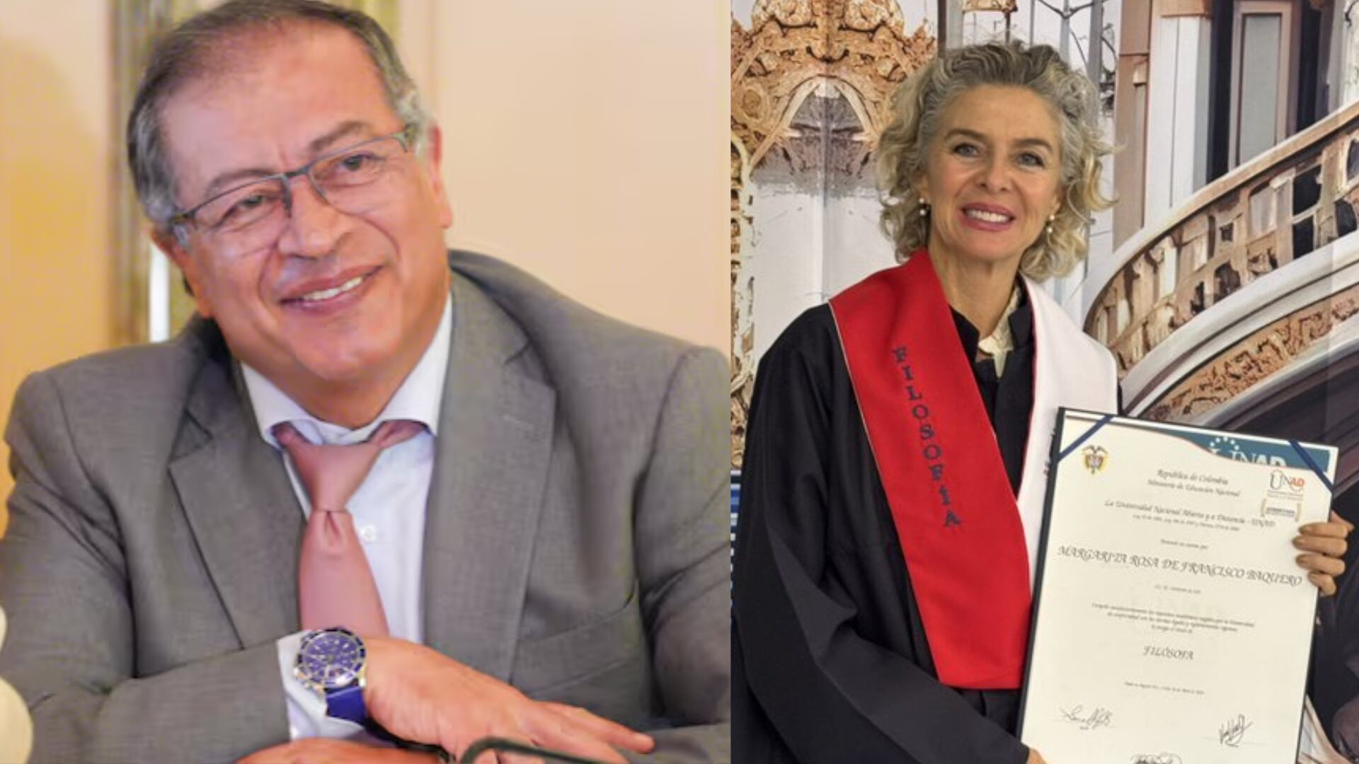 "Muchas felicitaciones, mujer colombiana, hermosa, inteligente y combativa“, fueron las declaraciones de Gustavo Petro, compartiendo la respectiva imagen de Margarita Rosa de Francisco con su toga y diploma en mano. Como es costumbre, el mandatario recibió críticas y algunos chistes por referirse de esta manera a la graduación de la actriz.