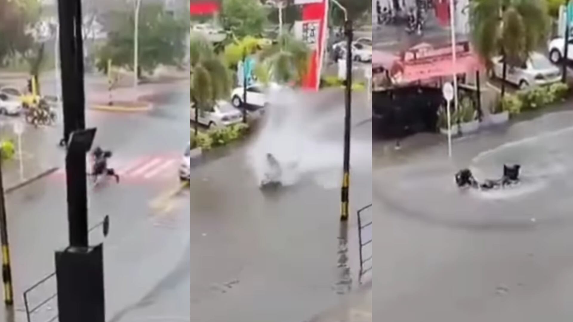 El portal ‘Prensa Libre’ fue uno de los muchos que divulgó estas imágenes en las que se ve a un motero que iba manejando a una gran velocidad por una de las vías de la ciudad bonita, mismo que no le bajó a la marcha al ver por delante suyo estaba la calle totalmente tapada por el agua, hasta el punto que la inundación sobrepasaba los andenes.