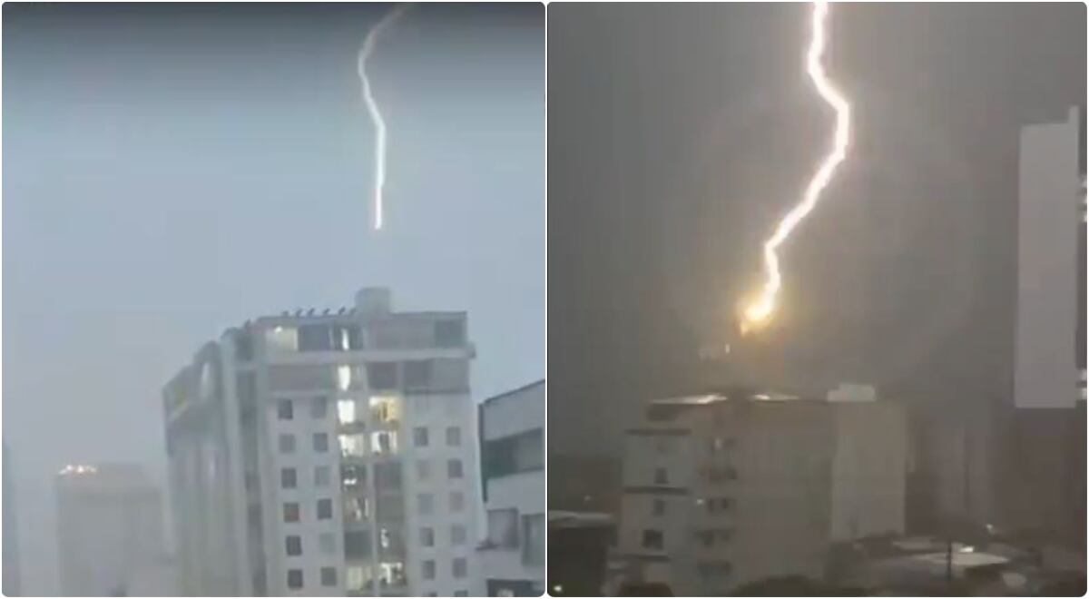 Durante este aguacero, se dio el impacto de un rayo sobre un edificio que quedó registrado en al menos dos videos aficionados que captaron el momento. En uno de ellos se observa la manera en la que la descarga cae en toda la parte superior de la edificación.