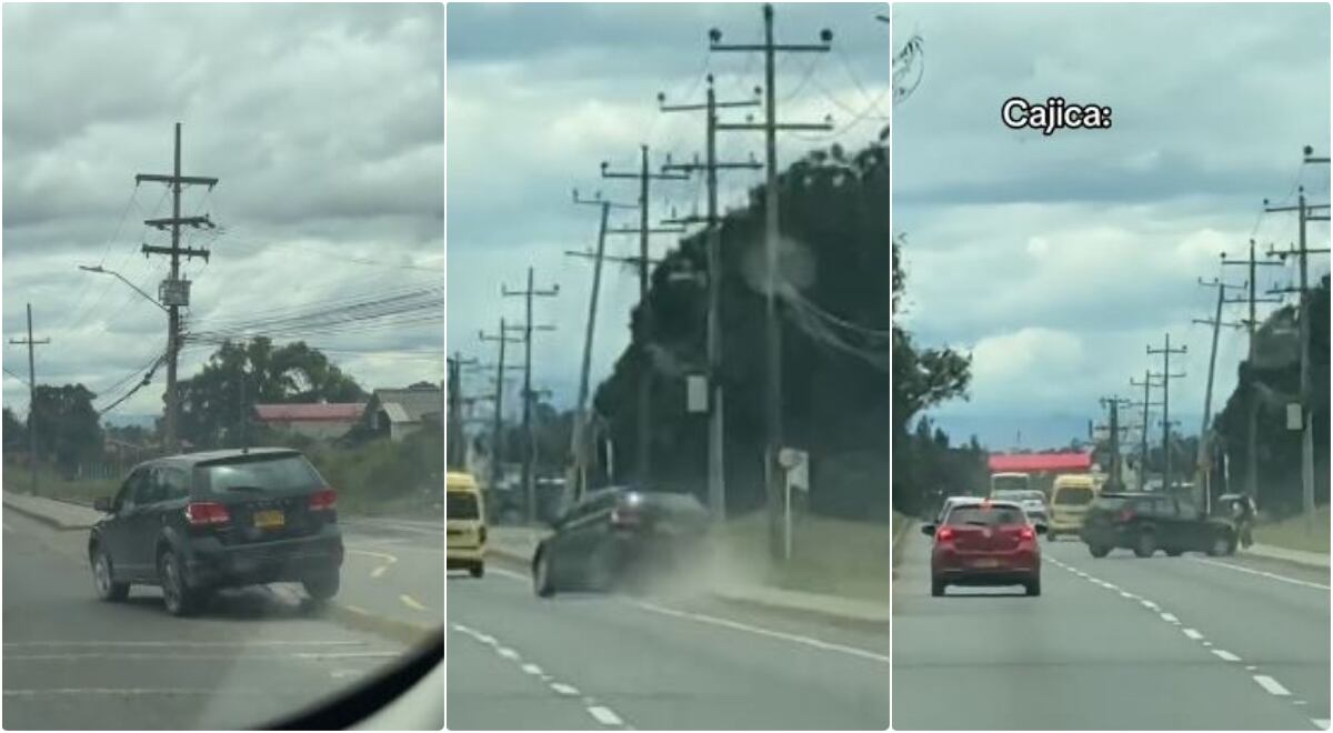 Una inquietante escena, que terminó en un accidente de tránsito, se registró este sábado 20 de septiembre en la vía que conduce entre los municipios de Cajicá y Zipaquirá, en el departamento de Cundinamarca, en donde un conductor generó un gran caos, puso en peligro a otros actores viales y terminó encunetado en un andén.