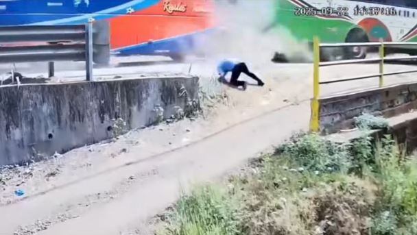 Una historia que parece sacada de una película de acción fue la que se vivió en el vecino país de Ecuador en donde un trabajador de una compañía de autobuses se salvó al saltar de manera acrobática en medio de un accidente de tránsito.
