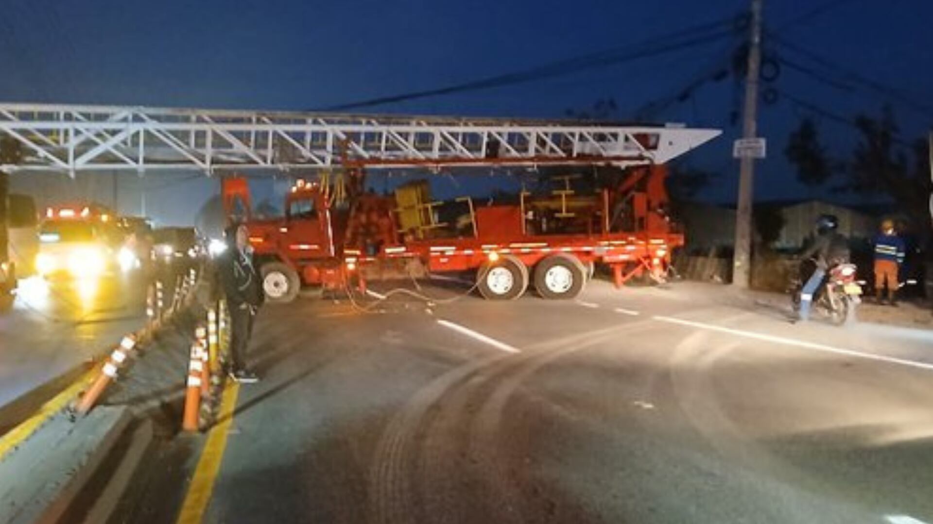 El camión es una grúa de gran tamaño, que se presume, perdió el control y terminó atravesada en la vía.