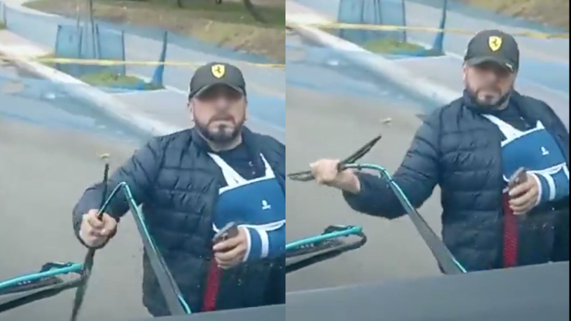 Sobre el comienzo del video se ve cómo el hombre, sin importar que tenía un brazo enyesado, arremetió contra el parabrisas del bus y, con el brazo sano empezó a doblar agresivamente el limpiabrisas del vehículo mientras gritaba improperios inaudibles.