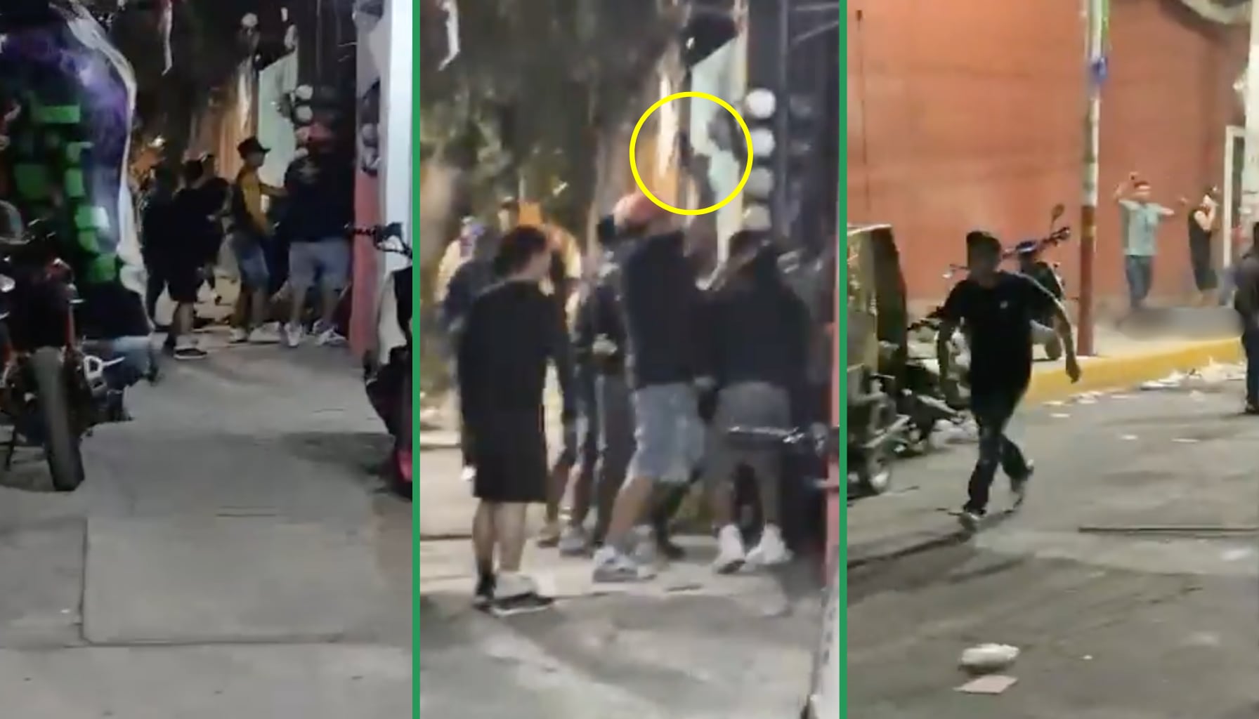 El periodista Jorge Becerril (@MrElDiablo8) publicó un video en el que se observa a varios hombres discutiendo en una calle iluminada por luces festivas y adornada con banderines. En cuestión de segundos, los empujones y gritos se intensifican hasta que se escuchan las primeras detonaciones.