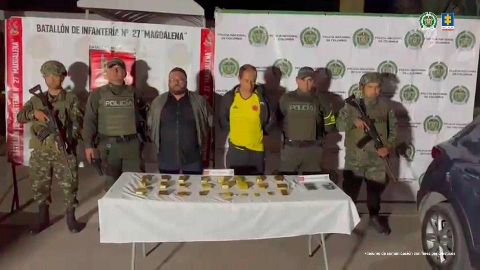 “En ese sentido, fueron imputados por el delito de lavado de activos y deberán cumplir medida de aseguramiento en centro carcelario. Las 28 barras de oro fueron sometidas a diferentes pruebas. Luego de acreditarse su autenticidad quedaron a disposición del Fondo Especial para la Administración de Bienes (FEAB) y serán custodiadas por el Banco de la República”, concluyó la Fiscalía en su pronunciamiento.