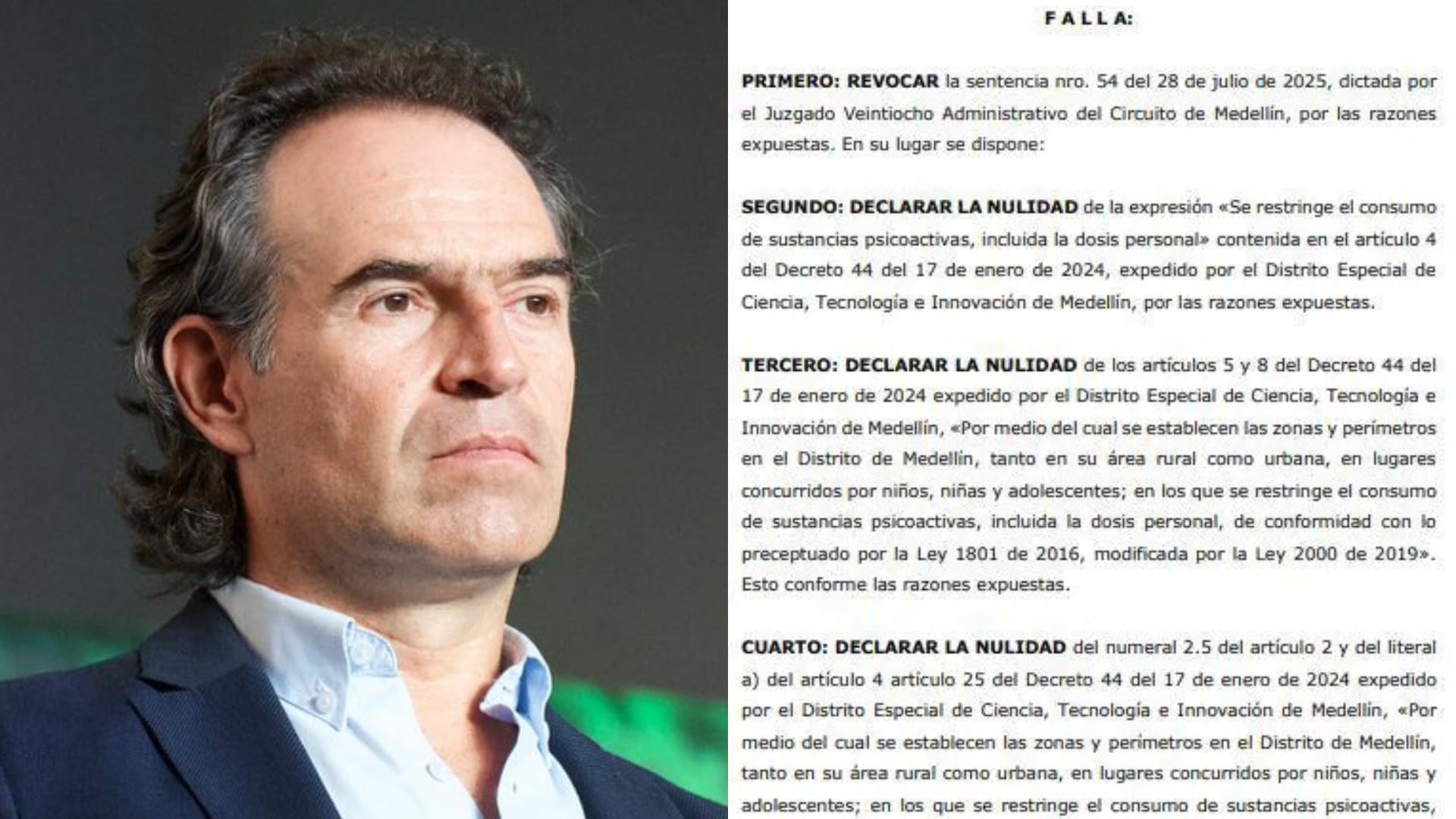 El miércoles 4 de diciembre, el Tribunal Administrativo de Antioquia tumbó una polémica medida dispuesta por el alcalde, Federico Gutiérrez, en 2024. El decreto, expedido el 17 de enero del año pasado, restringía las zonas de consumo de drogas en la ciudad para “proteger los derechos fundamentales de niños, niñas y adolescentes”.