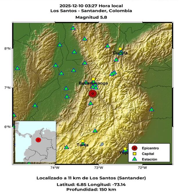 De acuerdo con el SGC, el epicentro del temblor se localizó en el municipio de Los Santos, Santander, una zona reconocida por su constante actividad sísmica. La profundidad del fenómeno alcanzó los 150 kilómetros. Tras el suceso, el Servicio Geológico Colombiano confirmó haber recibido más de 4.000 reportes ciudadanos sobre la percepción del movimiento.