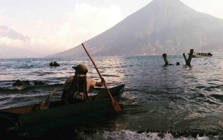 Hace poco hicimos un tour en lancha con un guía por algunos pueblos sobre el Atitlán, un lago rodeado por montañas y tres imponentes volcanes. En el tour viajaban una pareja de costarricenses con sus dos hijos, de 10 y 14 años –este último, con un arete en la división entre las fosas nasales. En cuanto pudo, el papá se presentó como abogado, luego dijo que en realidad era policía y había estudiado derecho, habló del presidente narcotraficante de Colombia…