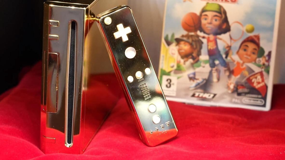 Una Nintendo Wii bañada en oro nada más y nada menos que de 24 kilates, es lo que acaba de salir a la venta recientemente mediante una subasta que arrancará apenas en dos mil dólares. Su creación en el pasado año 2009 fue con la intención de regalársela a la reina Isabel II, situación que nunca se logró concretar.