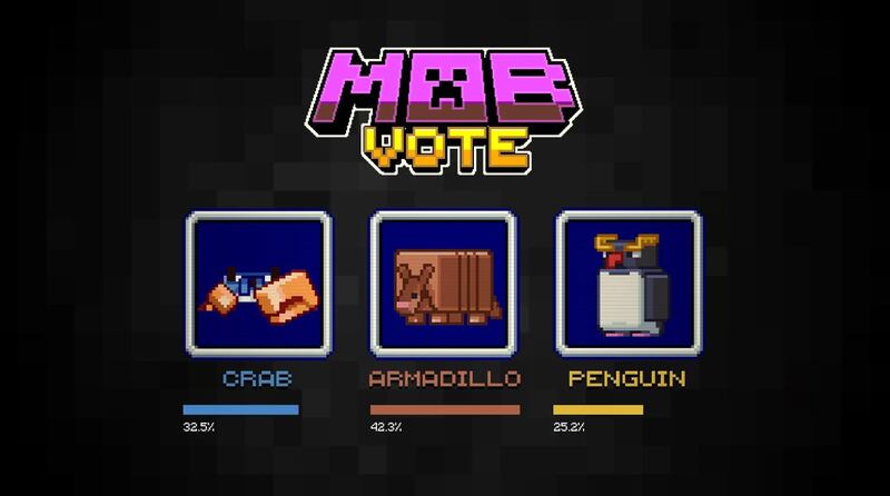 Recuerden que habían votaciones. La comunidad de Minecraft tuvo la oportunidad de elegir entre un armadillo, un pingüino o un cangrejo para la votación de mobs de 2023, y el armadillo ganó con un porcentaje del 42,3%.