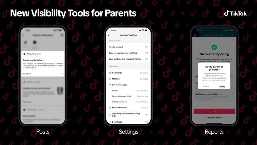 TikTok ha introducido nuevas herramientas de control parental, para que los padres reciban notificaciones cuando sus hijos adolescentes publiquen contenido o puedan bloquear cuentas específicas para controlar que los menores no accedan a ellas, además de agregar nuevas funciones para creadores.